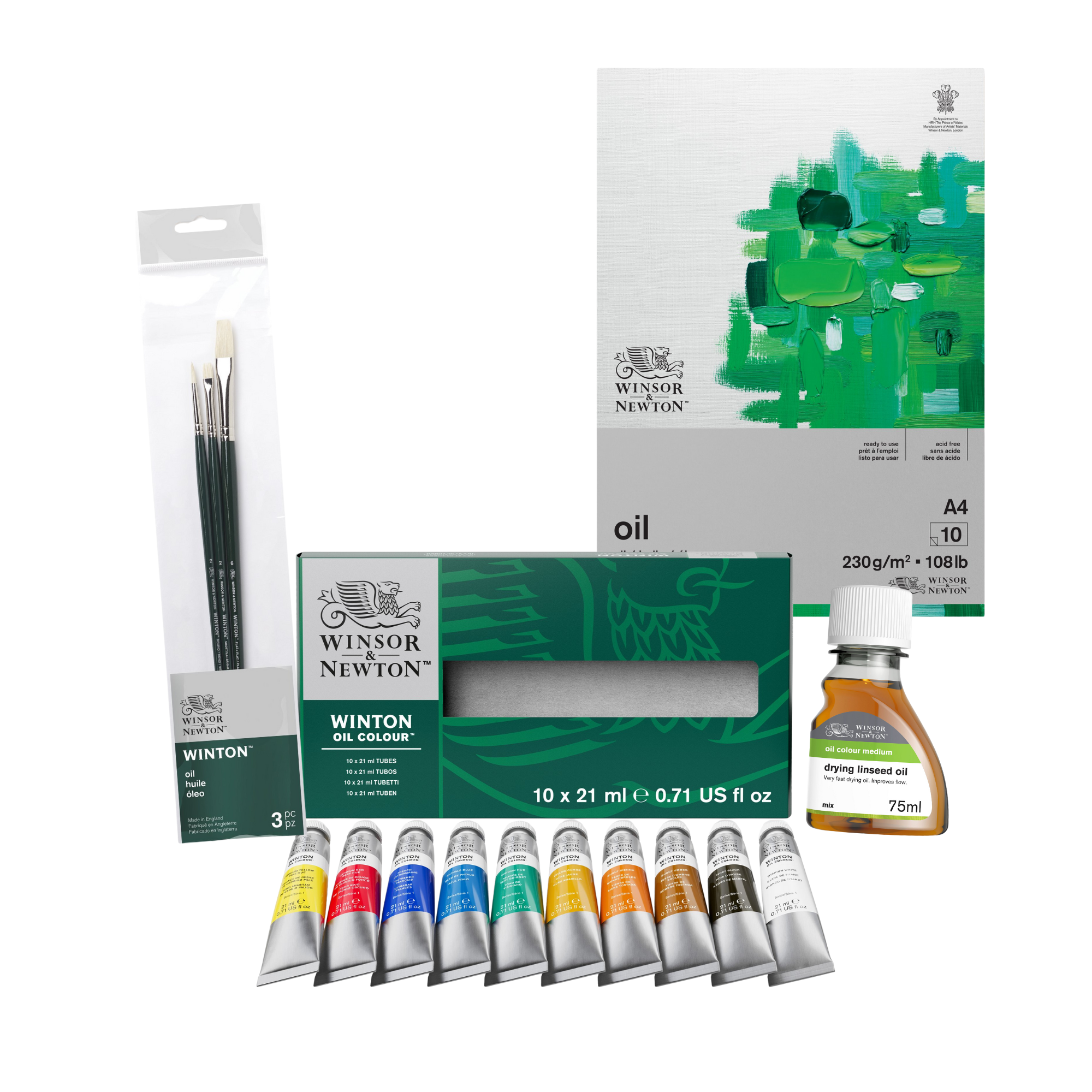 This carefully selected oil painting bundle sets you up with Winton Oils, essential mediums and a durable surface; perfect for learning foundational techniques. With brushes, a canvas board, an oil pad and drying linseed oil for confident experimentation, you’ll be ready to explore depth, texture and timeless colour as you begin your journey with oils.