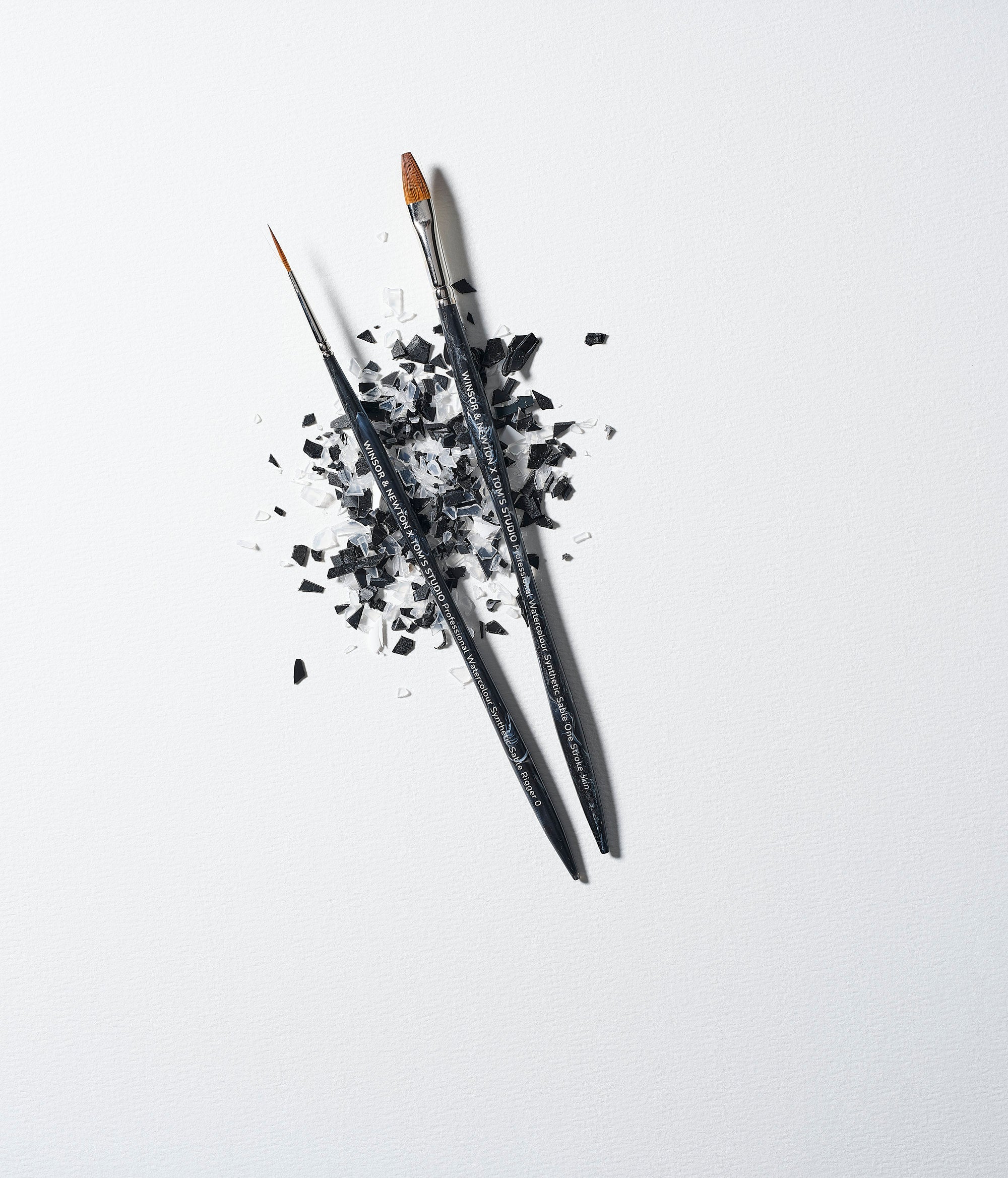 Each sculpted handle is crafted from a bespoke blend of reclaimed Winsor & Newton factory waste and recycled plastic, transforming discarded materials into professional tools with renewed purpose, and helping artists make more thoughtful choices. Every handle features a one-of-a-kind marbled pattern that tells its own story. The ergonomic form offers balance and control, while the innovative synthetic bristles mirror the spring and colour-carrying performance of natural sable.